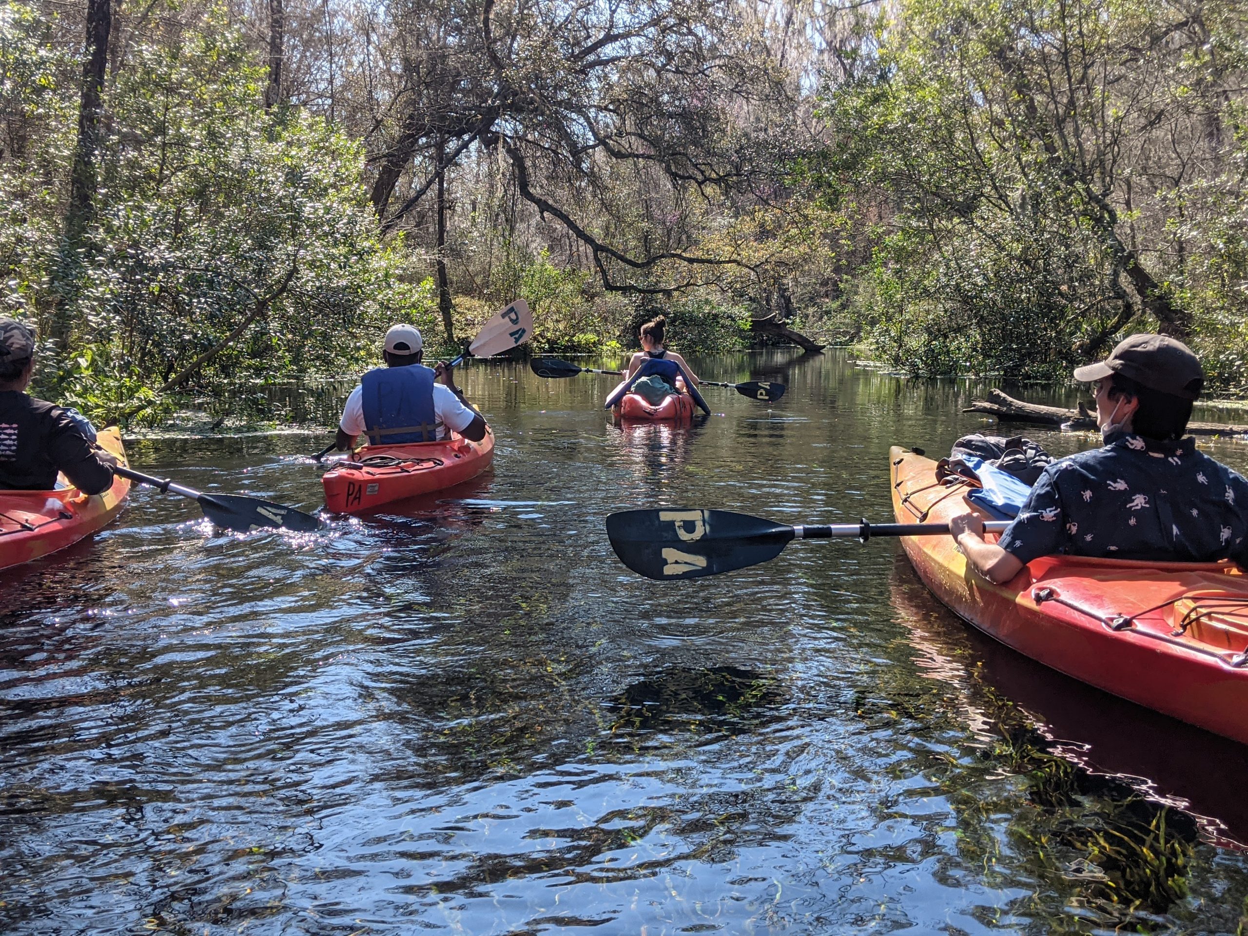 We will start the course by learning about watershed hydrology and the hydrological, biogeochemical and ecological roles of freshwater ecosystems. Then we will visit and collect data from a range of freshwater ecosystems that cross the river continuum. We will start in the small streams and wetlands that comprise the “wetlandscapes” of Florida. These wetlandscapes play an important role in nutrient and carbon cycling, and they provide important habitat for a range of invertebrates, fish, amphibians, and reptiles. We will then kayak down the Ichetucknee River, visiting one of the blue hole springs that provides water directly from the Floridan Aquifer. We will then follow these waters downstream to the Santa Fe River and its many springs and finally the Suwannee River, which flows into the Gulf. These rivers are home to abundant fish, turtles, alligators, manatees, birds, and other fauna. Along this continuum, we will observe changes in water quantity and quality, biogeochemistry, microbial communities, flora and fauna, and socioeconomic uses.